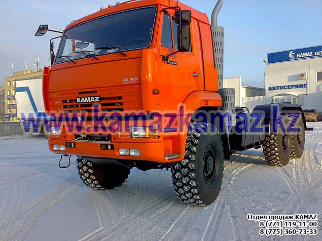 Евро-4, 6х6, односкатная ошиновка, г/п 11.22 тонн, мощность 300 л.с., КПП 154, объем платформы 27.5 куб.м., спальных мест: 1, шины 425/85R21 390/95R20, бак 210+350 л., ТСУ, МКБ, МОБ, дв. КАМАЗ 740.662-300(Е-4), топл. ап. BOSCH, Common Rail, тент, каркас, лебедка, внутр. размеры платформы 6112х2470х730 мм.