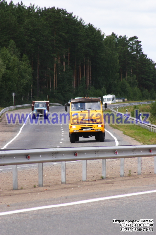 Евро-4, 6х6, односкатная ошиновка, г/п 11.22 тонн, мощность 300 л.с., КПП 154, объем платформы 27.5 куб.м., спальных мест: 1, шины 425/85R21 390/95R20, бак 210+350 л., ТСУ, МКБ, МОБ, дв. КАМАЗ 740.662-300(Е-4), топл. ап. BOSCH, Common Rail, тент, каркас, лебедка, внутр. размеры платформы 6112х2470х730 мм.