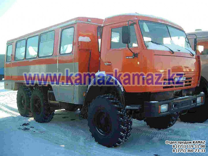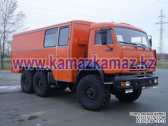 Евро-4, 6х6, односкатная ошиновка, г/п 11.22 тонн, мощность 300 л.с., КПП 154, объем платформы 27.5 куб.м., спальных мест: 1, шины 425/85R21 390/95R20, бак 210+350 л., ТСУ, МКБ, МОБ, дв. КАМАЗ 740.662-300(Е-4), топл. ап. BOSCH, Common Rail, тент, каркас, лебедка, внутр. размеры платформы 6112х2470х730 мм.