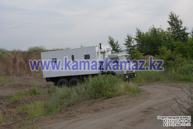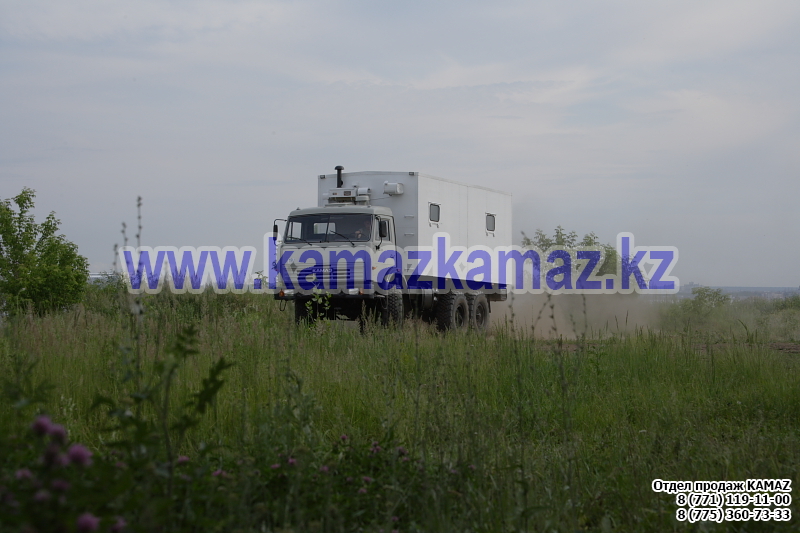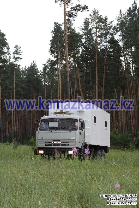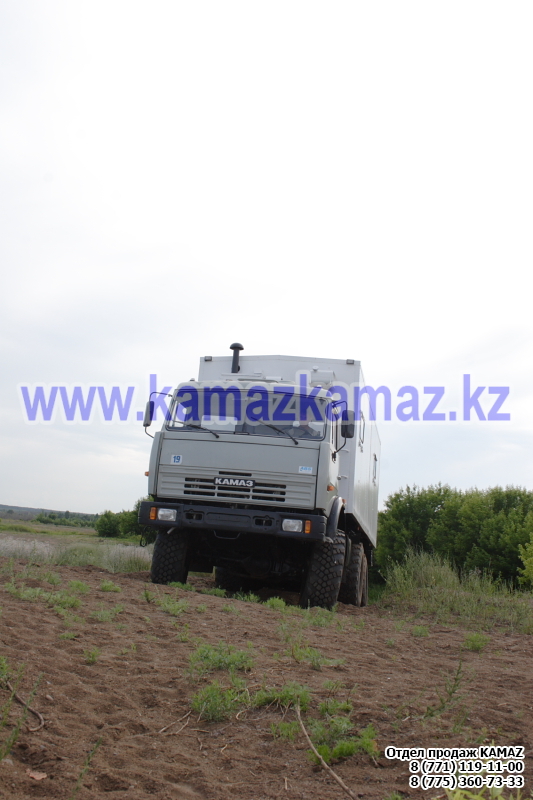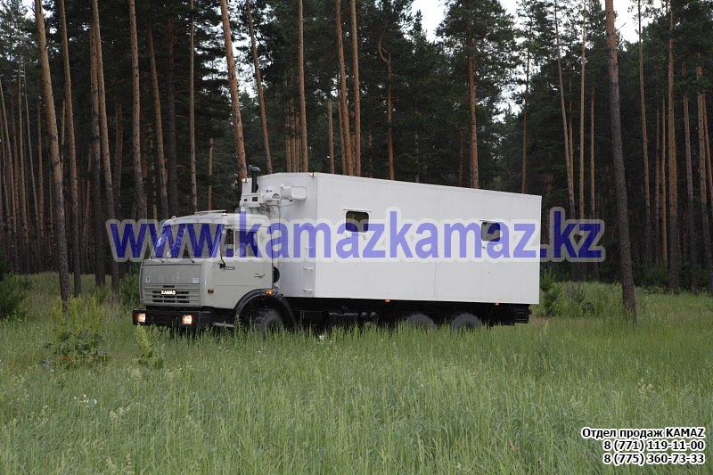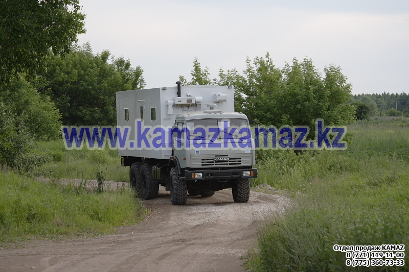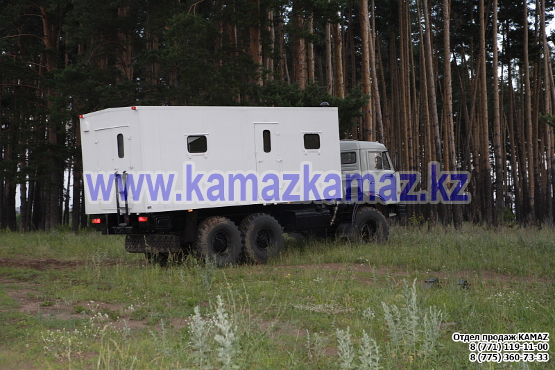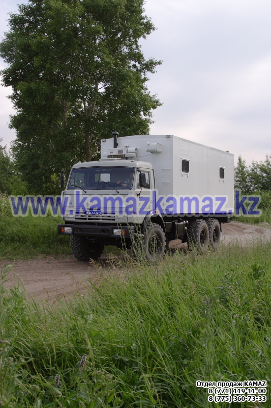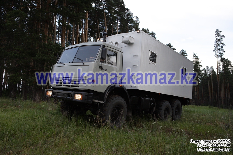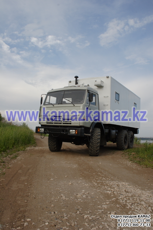 Евро-4, 6х6, односкатная ошиновка, г/п 11.22 тонн, мощность 300 л.с., КПП 154, объем платформы 27.5 куб.м., спальных мест: 1, шины 425/85R21 390/95R20, бак 210+350 л., ТСУ, МКБ, МОБ, дв. КАМАЗ 740.662-300(Е-4), топл. ап. BOSCH, Common Rail, тент, каркас, лебедка, внутр. размеры платформы 6112х2470х730 мм.