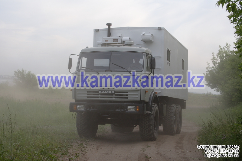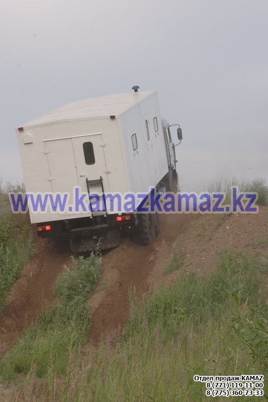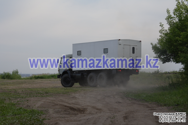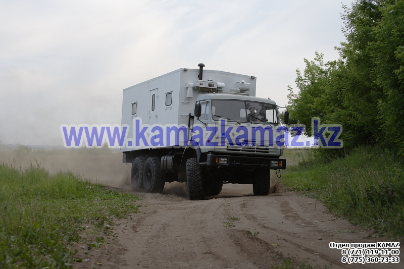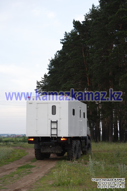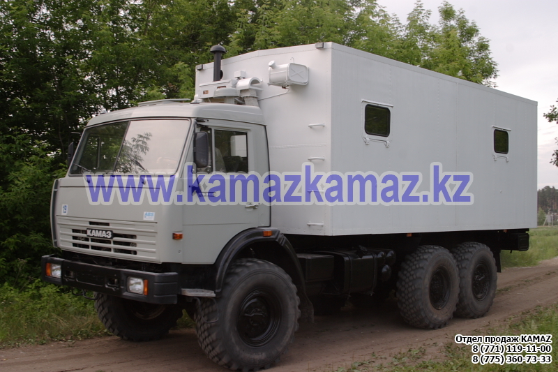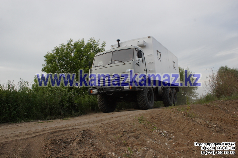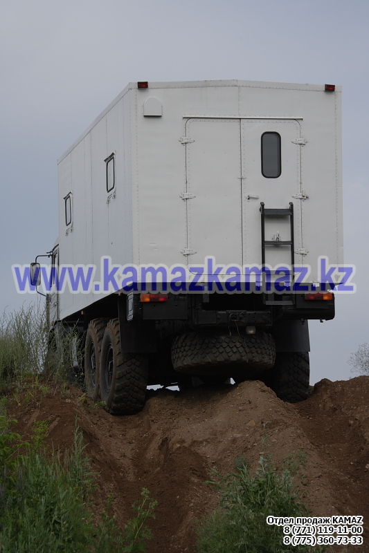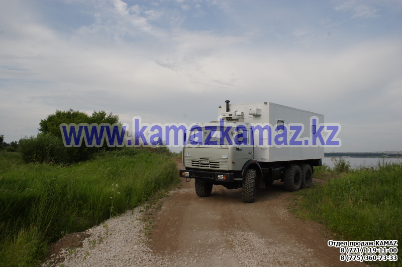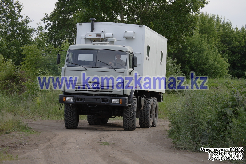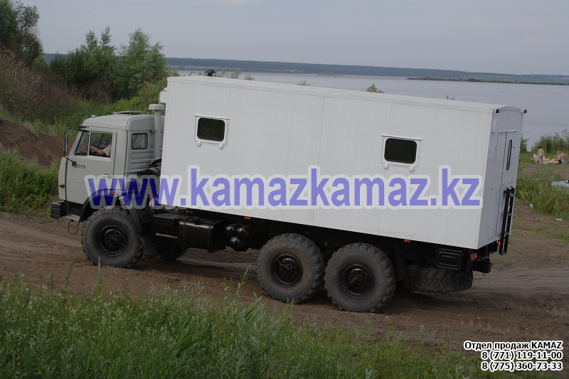 Евро-4, 6х6, односкатная ошиновка, г/п 11.22 тонн, мощность 300 л.с., КПП 154, объем платформы 27.5 куб.м., спальных мест: 1, шины 425/85R21 390/95R20, бак 210+350 л., ТСУ, МКБ, МОБ, дв. КАМАЗ 740.662-300(Е-4), топл. ап. BOSCH, Common Rail, тент, каркас, лебедка, внутр. размеры платформы 6112х2470х730 мм.