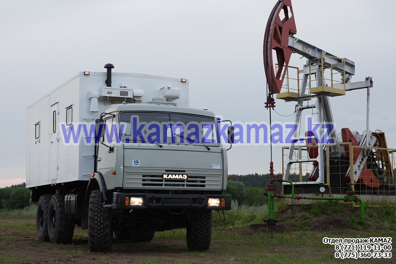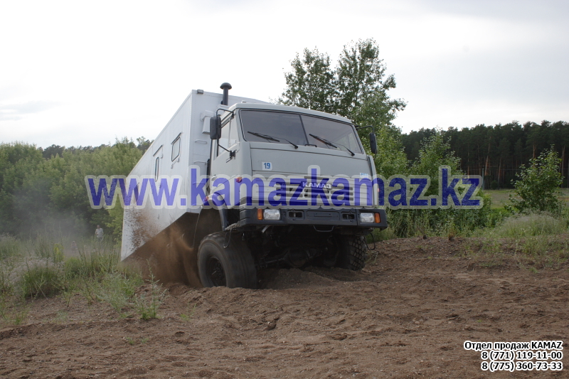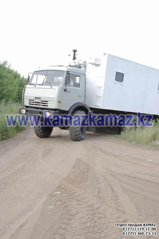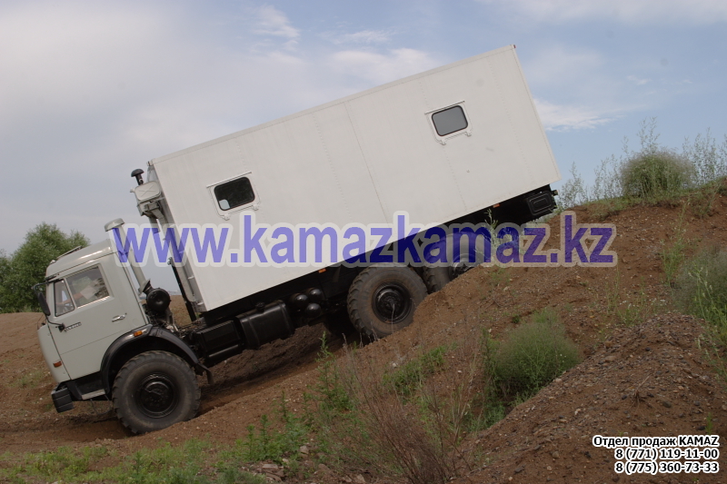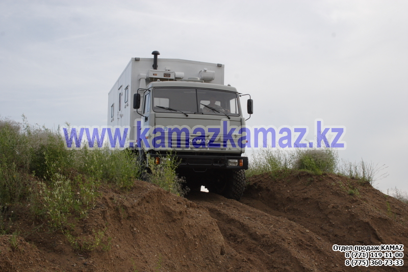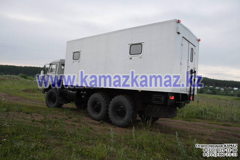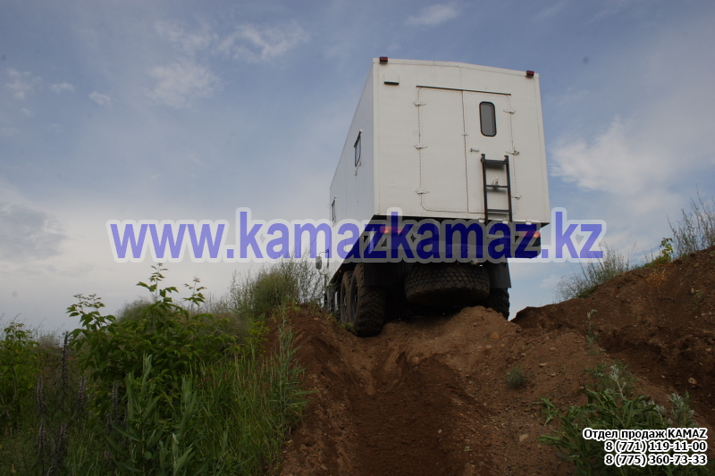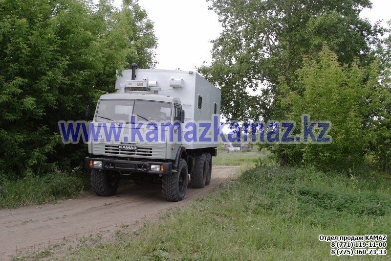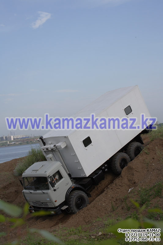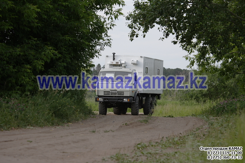 Евро-4, 6х6, односкатная ошиновка, г/п 11.22 тонн, мощность 300 л.с., КПП 154, объем платформы 27.5 куб.м., спальных мест: 1, шины 425/85R21 390/95R20, бак 210+350 л., ТСУ, МКБ, МОБ, дв. КАМАЗ 740.662-300(Е-4), топл. ап. BOSCH, Common Rail, тент, каркас, лебедка, внутр. размеры платформы 6112х2470х730 мм.