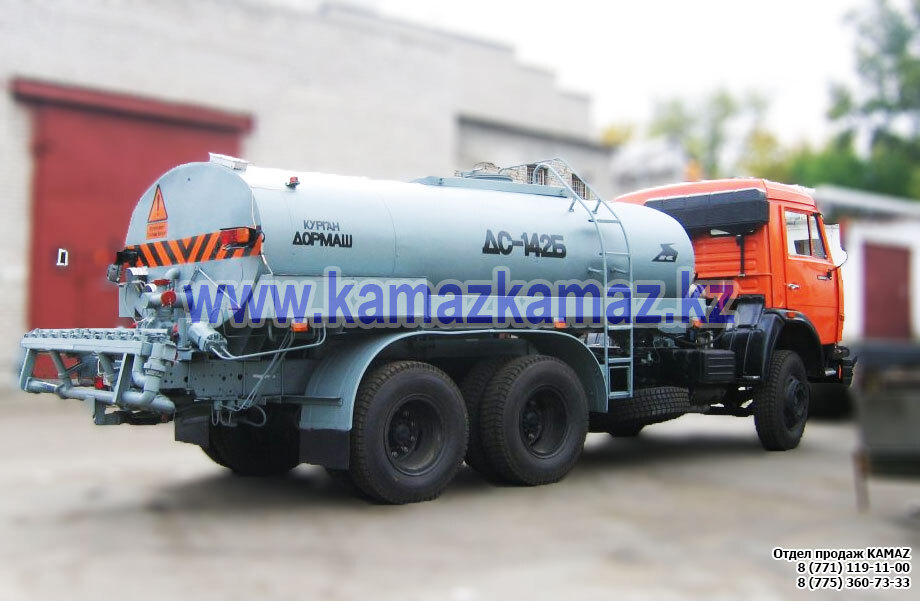 2 цистерны по 5 куб.м., с механизмом выдачи и укладка рукава, шасси: КАМАЗ-65115-3082-23, Евро-4, 6х4, двускатная ошиновка, г/п 15.15 тонн, мощность 300 л.с., КПП ZF9, монтажная длина рамы 5780 мм, шины 10.00R20 11.00R22,5, бак 350 л., ТСУ, МКБ, МОБ, дв. Cummins ISB6.7e4 300 (Е-4), ТНВД BOSCH, система нейтрализации ОГ(AdBlue), ДЗК, завод-производитель спецтехники: ООО "КОММАШ-ГРАЗ".