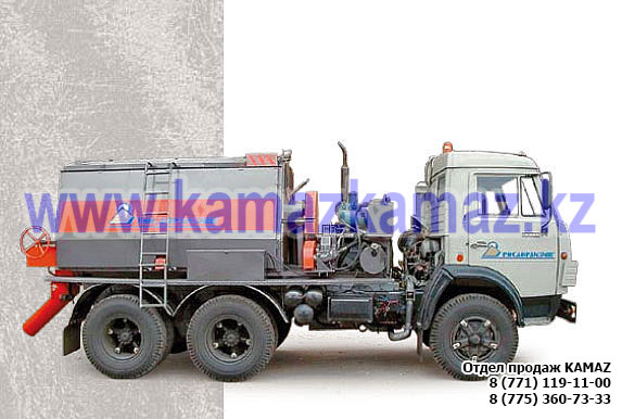 2 цистерны по 5 куб.м., с механизмом выдачи и укладка рукава, шасси: КАМАЗ-65115-773082-42, Евро-4, 6х4, двускатная ошиновка, г/п 14.65 тонн, мощность 280 л.с., КПП 154, монтажная длина рамы 5780 мм, шины 10.00R20 11.00R22,5, бак 350 л., ТСУ, МКБ, МОБ, дв. КАМАЗ 740.622-280 (Е-4), топл. ап. BOSCH, Common Rail, ДЗК, завод-производитель спецтехники: ООО "КОММАШ-ГРАЗ".
