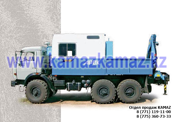 Евро-4, 6х6, односкатная ошиновка, г/п 11.22 тонн, мощность 300 л.с., КПП 154, объем платформы 27.5 куб.м., спальных мест: 1, шины 425/85R21 390/95R20, бак 210+350 л., ТСУ, МКБ, МОБ, дв. КАМАЗ 740.662-300(Е-4), топл. ап. BOSCH, Common Rail, тент, каркас, лебедка, внутр. размеры платформы 6112х2470х730 мм.