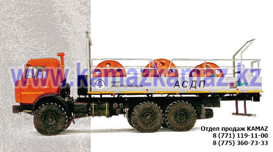 Евро-4, 6х6, односкатная ошиновка, г/п 11.22 тонн, мощность 300 л.с., КПП 154, объем платформы 27.5 куб.м., спальных мест: 1, шины 425/85R21 390/95R20, бак 210+350 л., ТСУ, МКБ, МОБ, дв. КАМАЗ 740.662-300(Е-4), топл. ап. BOSCH, Common Rail, тент, каркас, лебедка, внутр. размеры платформы 6112х2470х730 мм.