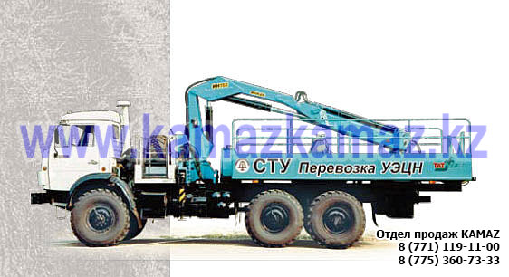 Евро-4, 6х6, односкатная ошиновка, г/п 11.22 тонн, мощность 300 л.с., КПП 154, объем платформы 27.5 куб.м., спальных мест: 1, шины 425/85R21 390/95R20, бак 210+350 л., ТСУ, МКБ, МОБ, дв. КАМАЗ 740.662-300(Е-4), топл. ап. BOSCH, Common Rail, тент, каркас, лебедка, внутр. размеры платформы 6112х2470х730 мм.
