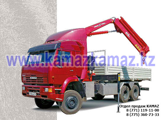 Евро-4, 6х6, односкатная ошиновка, г/п 11.22 тонн, мощность 300 л.с., КПП 154, объем платформы 27.5 куб.м., спальных мест: 1, шины 425/85R21 390/95R20, бак 210+350 л., ТСУ, МКБ, МОБ, дв. КАМАЗ 740.662-300(Е-4), топл. ап. BOSCH, Common Rail, тент, каркас, лебедка, внутр. размеры платформы 6112х2470х730 мм.