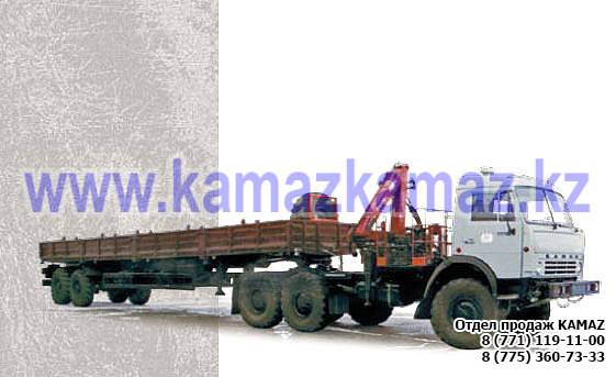 Евро-4, 6х6, односкатная ошиновка, г/п 11.22 тонн, мощность 300 л.с., КПП 154, объем платформы 27.5 куб.м., спальных мест: 1, шины 425/85R21 390/95R20, бак 210+350 л., ТСУ, МКБ, МОБ, дв. КАМАЗ 740.662-300(Е-4), топл. ап. BOSCH, Common Rail, тент, каркас, лебедка, внутр. размеры платформы 6112х2470х730 мм.