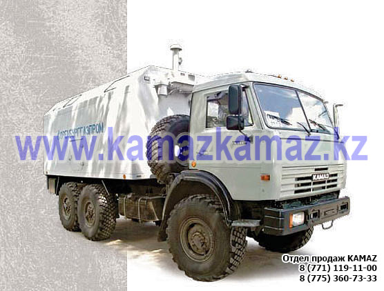 Евро-4, 6х6, односкатная ошиновка, г/п 11.22 тонн, мощность 300 л.с., КПП 154, объем платформы 27.5 куб.м., спальных мест: 1, шины 425/85R21 390/95R20, бак 210+350 л., ТСУ, МКБ, МОБ, дв. КАМАЗ 740.662-300(Е-4), топл. ап. BOSCH, Common Rail, тент, каркас, лебедка, внутр. размеры платформы 6112х2470х730 мм.
