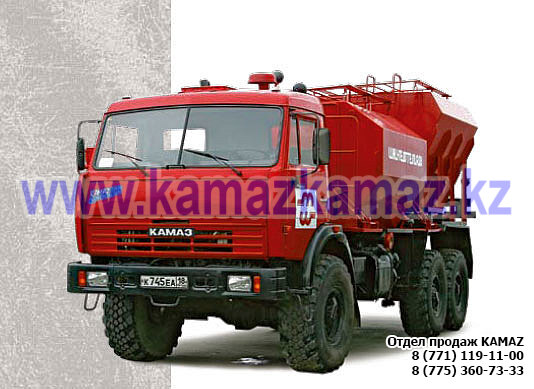 2 цистерны по 5 куб.м., с механизмом выдачи и укладка рукава, шасси: КАМАЗ-65115-773082-42, Евро-4, 6х4, двускатная ошиновка, г/п 14.65 тонн, мощность 280 л.с., КПП 154, монтажная длина рамы 5780 мм, шины 10.00R20 11.00R22,5, бак 350 л., ТСУ, МКБ, МОБ, дв. КАМАЗ 740.622-280 (Е-4), топл. ап. BOSCH, Common Rail, ДЗК, завод-производитель спецтехники: ООО "КОММАШ-ГРАЗ".