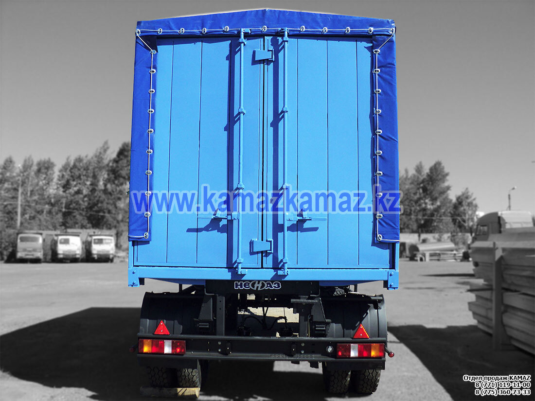 Евро-4, 6х4, двускатная ошиновка, г/п 22 тонн, мощность 400 л.с., КПП ZF16, объем платформы 16 куб.м., шины 315/80R22,5, бак 350 л., без ТСУ, зад.разгрузка, прямоуг.сеч, дв. КАМАЗ-740.632-400 (Eвро-4), КПП ZF 16S1820TO, МКБ, МОБ, ASR, кабина Daimler (низкая), кондиционер, отопитель каб. Eberspacher Airtronic D2 24V, обогрев платформы, полог, лестница, гидрооборудование HYVA,.