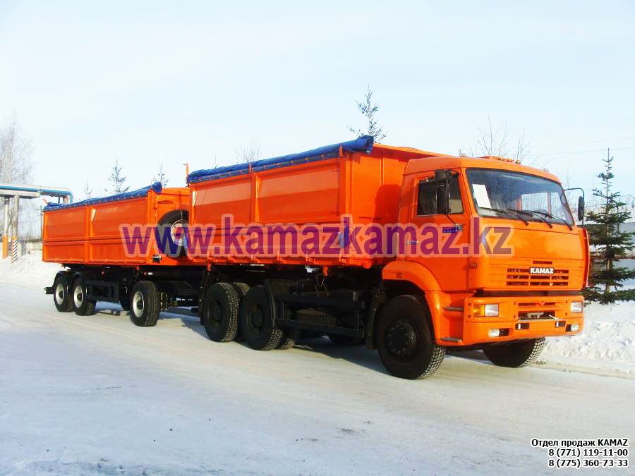 Евро-4, 6х4, двускатная ошиновка, г/п 11.5 тонн, мощность 280 л.с., КПП 154, объем платформы 15.2 куб.м., спальных мест: 1, шины 11.00R20 11.00R22,5, бак 500 л., ТСУ, бок.разгрузка, надст.борта, МКБ, МОБ, дв. КАМАЗ 740.622-280 (Е-4), ТНВД BOSCH, Common Rail, ДЗК, на ш.65115-773063-42.