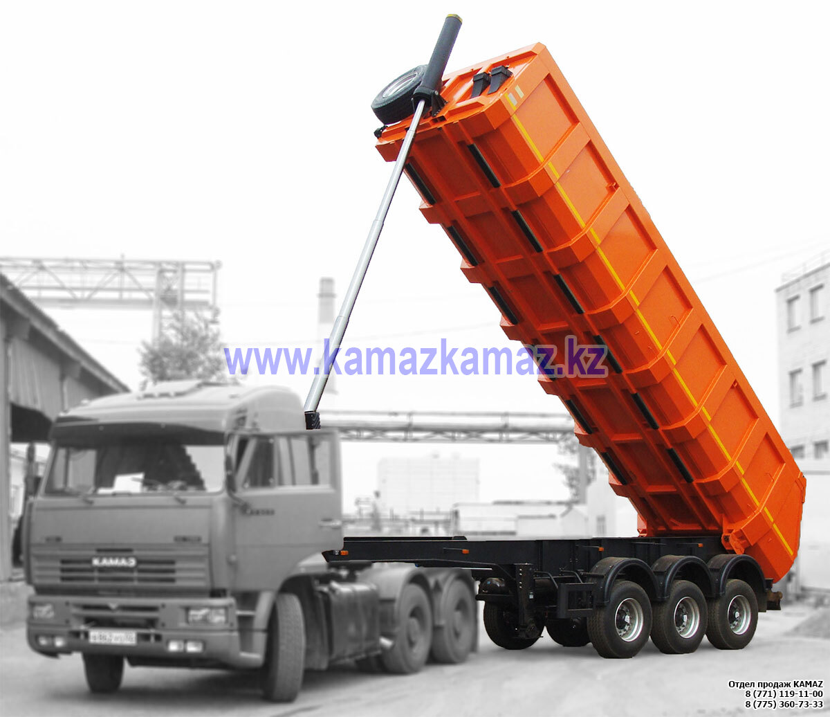 Евро-4, 6х4, двускатная ошиновка, г/п 22 тонн, мощность 400 л.с., КПП ZF16, объем платформы 16 куб.м., шины 315/80R22,5, бак 350 л., без ТСУ, зад.разгрузка, прямоуг.сеч, дв. КАМАЗ-740.632-400 (Eвро-4), КПП ZF 16S1820TO, МКБ, МОБ, ASR, кабина Daimler (низкая), кондиционер, отопитель каб. Eberspacher Airtronic D2 24V, обогрев платформы, полог, лестница, гидрооборудование HYVA,.